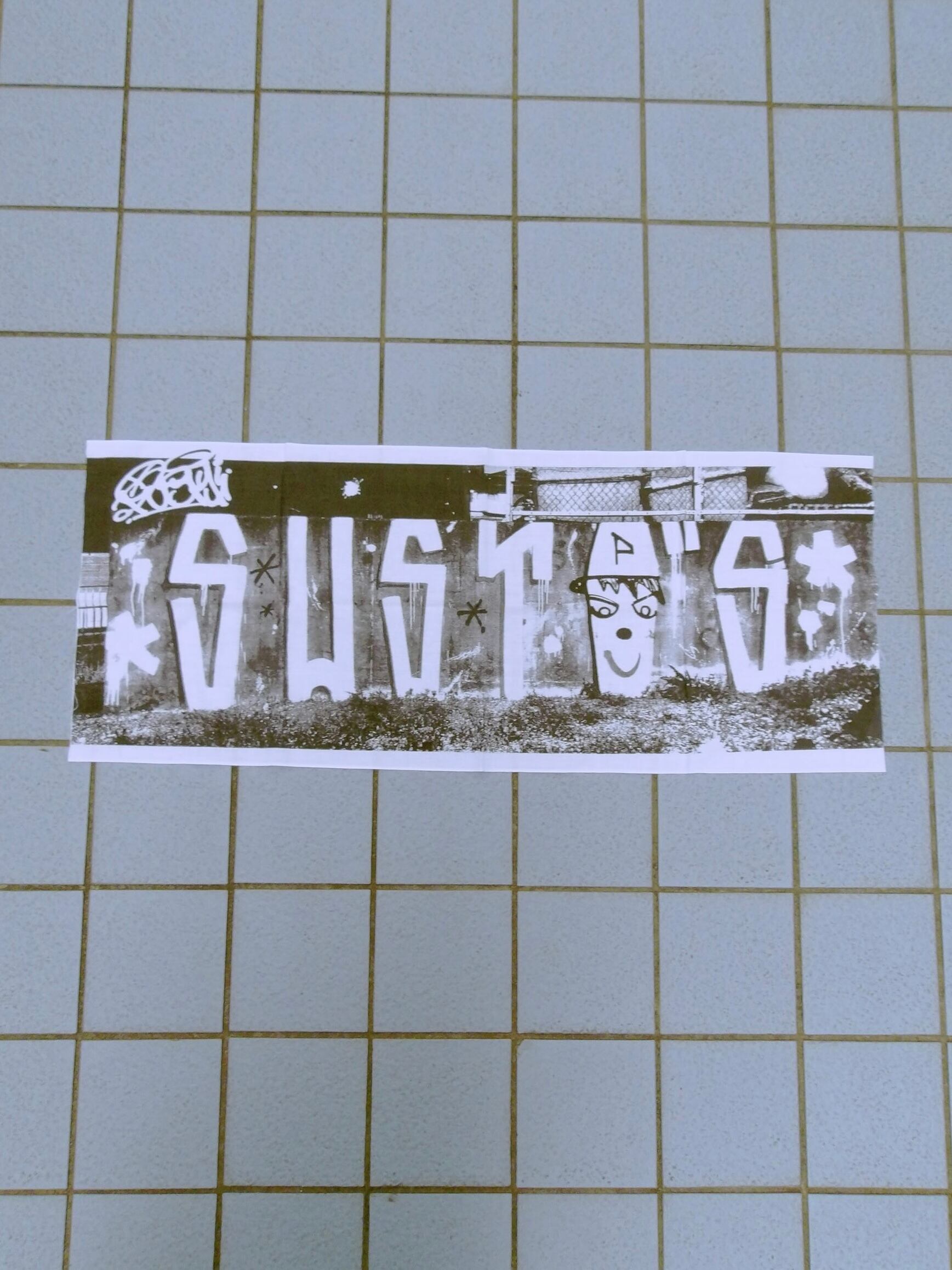 PUSHU氏によるSUSTOSのペイントをモノクロでプリントした手拭いです。