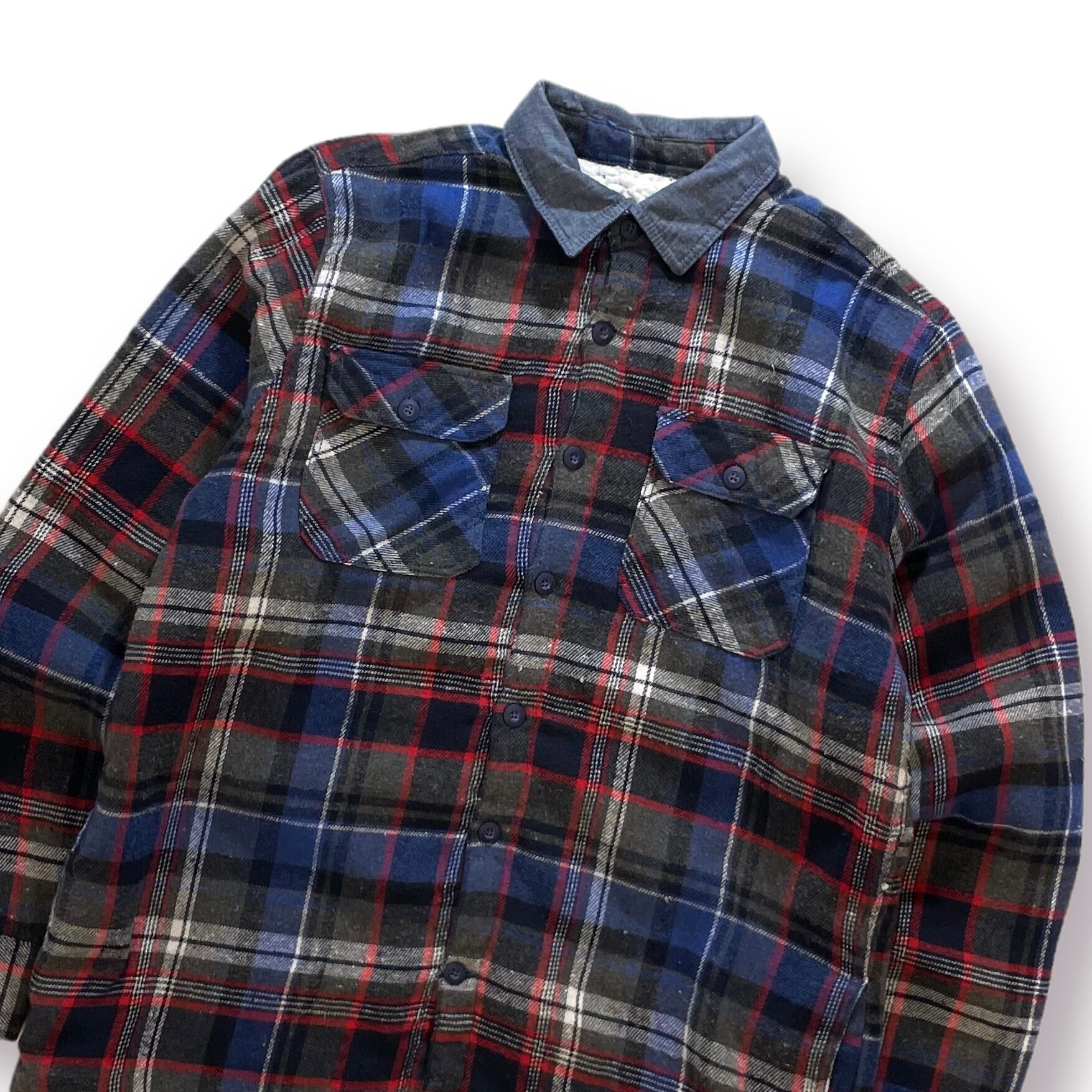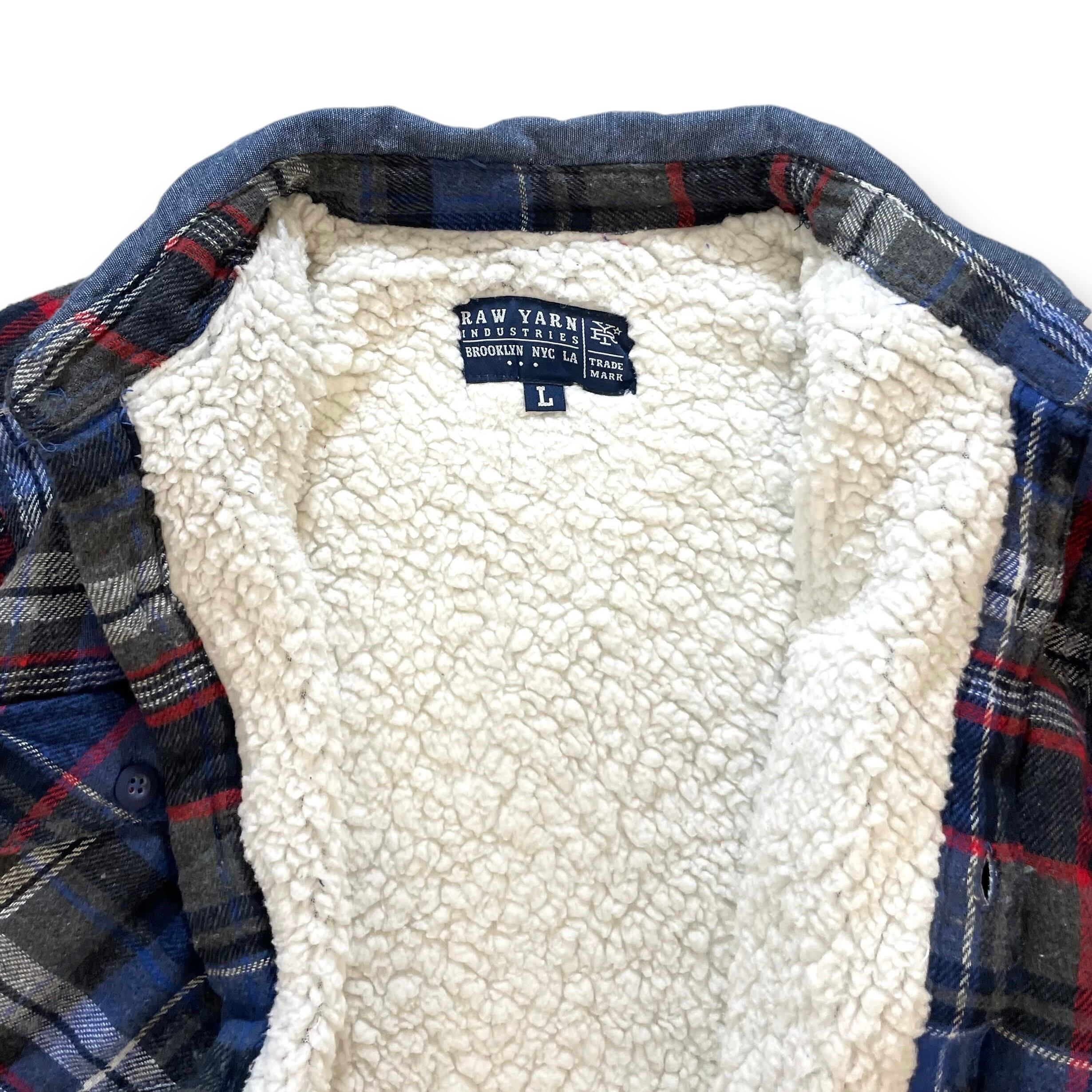 USED RAW YARN INDUSTRIES boa lined flannel check shirts - blue
